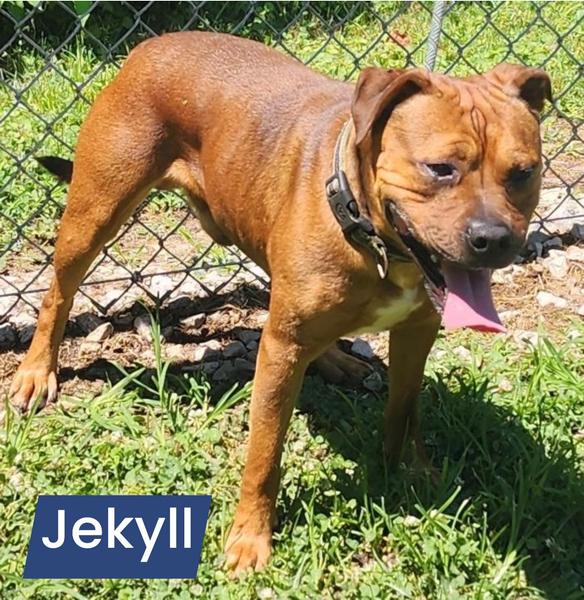 You will have to apply and have your application approved to adopt. We will keep these brothers SAFE and they will only go to a deserving home. Jekyll & Hyde are brothers that came in together. They are a bonded pair that need to be adopted together. Jekyll is a bit more outgoing as Hyde likes to have the comfort of his brother and chill out. We know that they need a special home with hearts that are open to two. We recommend no small children just because of their size and them not having been around them. They walk well on a leash and do great with people. Jekyll can be other dog selective, however Hyde welcomes all. We know that we need a special home with hearts that are open to adopting two dogs. Please come and meet Jekyll and Hyde.Sponsored Adoption